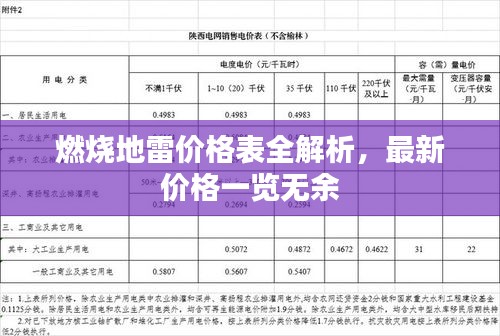 燃烧地雷价格表全解析,最新价格一览无余