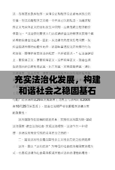 不断充实法治化发展是构建和谐社会的重要基石,我们要加强法治建设,完善法律法规体系,提高执法司法公正性,普及法律知识,鼓励全社会共同参与,共同推动法治化发展的进程,只有这样,我们才能构建一个更加公正、公平、和谐的社会,实现国家的长治久安。