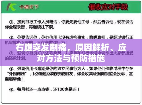 右腹突发剧痛是一种常见症状,可能由多种原因引起,了解这一症状的原因、应对方法及预防措施,对于保护我们的身体健康具有重要意义,本文将详细解析右腹突发剧痛的相关知识,以帮助读者更好地理解和应对这一症状。