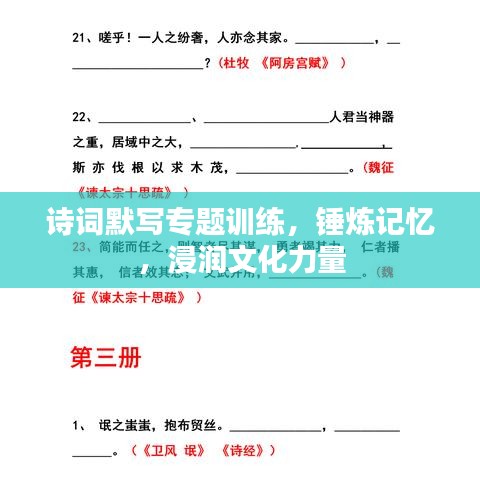 诗词,作为中华文化的瑰宝,承载了丰富的历史内涵与深厚的民族情感,默写诗词,既是对传统文化的传承,也是对记忆能力的锻炼,本文将围绕“诗词默写专题训练”这一主题,探讨其重要性、训练方法以及在实际应用中的价值。