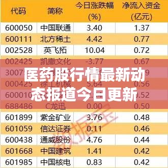 随着全球经济的不断发展和人们生活水平的提高,医药行业作为关系到国民健康的重要产业,一直备受关注,医药股行情的表现引起了广大投资者的高度关注,本文将为您带来医药股行情的今日最新消息。
