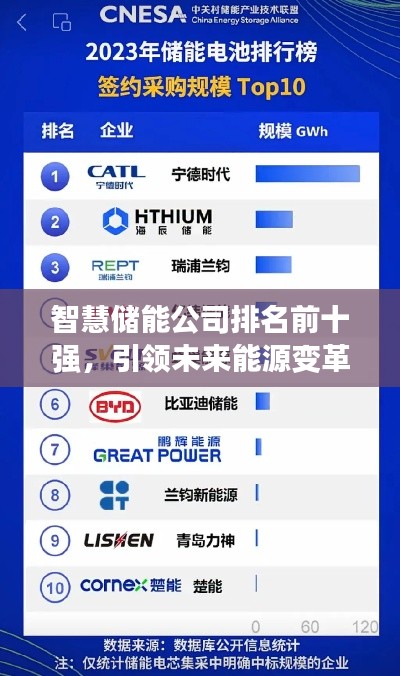 智慧储能公司排名前十强,引领未来能源变革风潮!