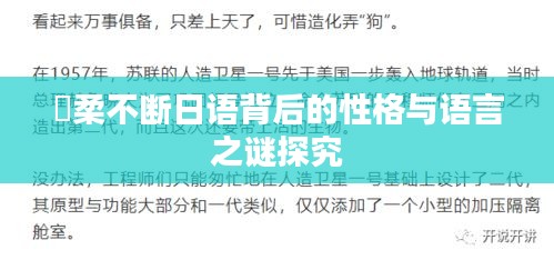 在多元文化的世界中,语言不仅是沟通的工具,更是表达个人思想、情感和性格的媒介,当我们谈论“優柔不断”这一性格特征时,不禁会思考其与语言之间存在的微妙关系,在日语中,是否有与之相对应的表述?这种性格特征在日语使用者中是否普遍存在?本文将从性格与语言的密切联系入手,探讨優柔不断日语的特点及其背后的文化心理。