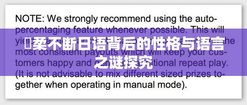 在日常生活中,我们可以观察到優柔不断日语的多种表现,在对话中,優柔不断的人可能会频繁使用诸如“もちろん”、“どうですか”等疑问句和委婉表达,以寻求他人的认同和理解,在书面语中,他们可能会过度使用敬语和谦语,以显示对对方的尊重和礼貌。