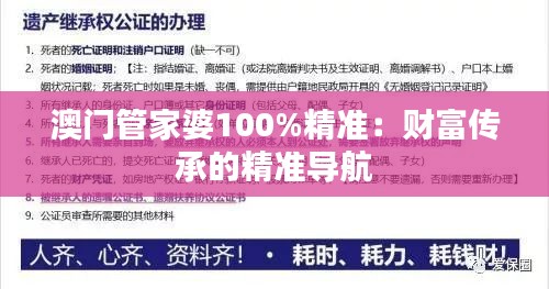 澳门管家婆100%精准:财富传承的精准导航