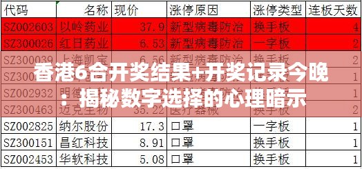 香港6合开奖结果+开奖记录今晚:揭秘数字选择的心理暗示