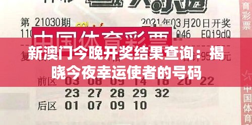 新澳门今晚开奖结果查询:揭晓今夜幸运使者的号码