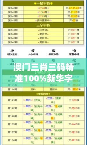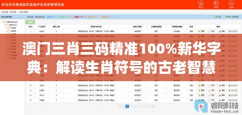 "澳门三肖三码精准100%新华字典:解读生肖符号的古老智慧"是一个复杂且丰富的课题,它涉及到中华文化中关于生肖符号的深层次解析。这一研究性说明文将对生肖符号进行深入分析,探讨其在文化、历史和哲学方面的影响。生肖,又称为十二属、土象、属相等,是中国传统文化中用以标记年份的一套动物系统。本文献的研究内容不会涉及赌博或彩票相关活动。