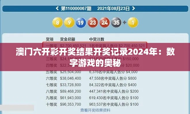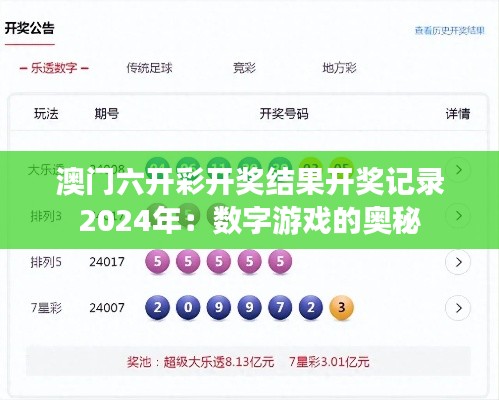 澳门六开彩开奖结果开奖记录2024年:数字游戏的奥秘
