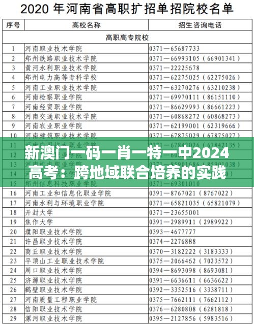 新澳门一码一肖一特一中2024高考:跨地域联合培养的实践