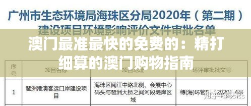澳门最准最快的免费的:精打细算的澳门购物指南