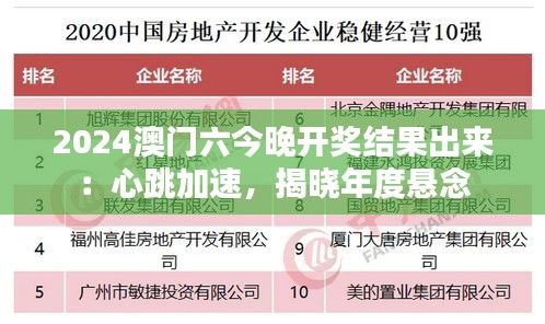 2024澳门六今晚开奖结果出来:心跳加速,揭晓年度悬念