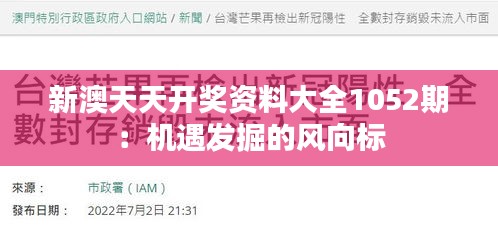 新澳天天开奖资料大全1052期:机遇发掘的风向标