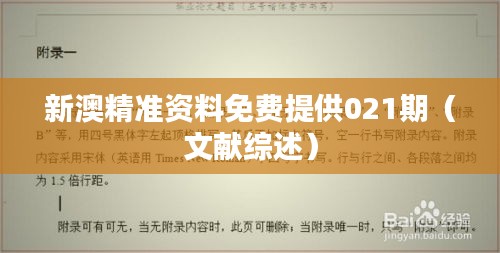 新澳精准资料免费提供021期(文献综述)