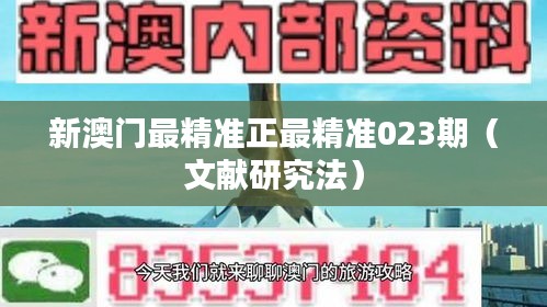 新澳门最精准正最精准023期(文献研究法)的研究是通过对澳门地区特定的文献资料进行系统和深入的分析,以期获得对该地区某一特定问题或现象的深刻理解和准确把握。在此篇文章中,我们将不深入探讨文献的意义或价值,而是聚焦于文献研究法的具体操作和应用过程,以便于读者能够清晰地了解“新澳门最精准最精准023期”项目涉及的文献资料及其内容。