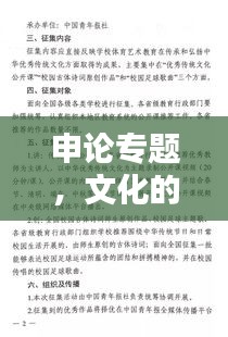 在申论专题中,文化因素常常与国家政策、社会发展、人民生活等方面紧密相连,在乡村振兴战略中,文化的传承与发展就是其中的重要内容,传统文化的传承,可以丰富乡村的文化生活,提高乡村的文明程度,推动乡村的经济发展,在现代城市建设中,文化的保护与创新也是重要的议题,如何在城市发展中保护历史文化遗存,如何让现代文化与传统文化相互融合,都是需要我们深入探讨的问题。