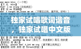 独家试唱歌词谐音,独家试唱中文版