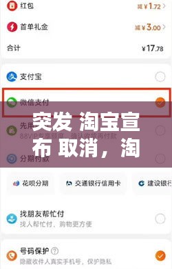 在电子商务领域,淘宝网一直以其独特的商业模式和庞大的用户群体而备受关注。然而,近日,一则关于淘宝宣布取消重大政策的消息在业界引起了轩然大波。这一决策不仅影响了淘宝平台的运营,也对广大商家和消费者产生了深远的影响。