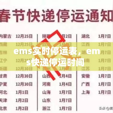 总之,EMS实时停运表是快递行业中的重要组成部分,它不仅有助于提高快递公司的运营效率,还能为用户提供便捷的服务。随着技术的不断进步,实时停运表将更加智能化、个性化,为快递行业的发展提供有力支持。