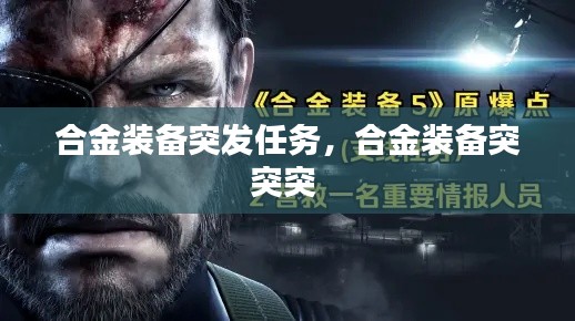 合金装备系列一直是潜行动作游戏领域的佼佼者,自1987年首部作品问世以来,凭借其深度的剧情、丰富的角色设定和复杂的潜行系统,吸引了无数玩家。而在系列的众多作品中,合金装备5:幻痛以其开放世界的设定和多样化的任务类型,为玩家带来了全新的游戏体验。在这款游戏中,玩家将扮演潜行高手 Snake,执行一系列秘密任务,以揭露隐藏在背后的阴谋。而在某个特殊的时刻,玩家将遭遇一场突如其来的“合金装备突发任务”,这将是他们游戏旅程中的一次难忘挑战。