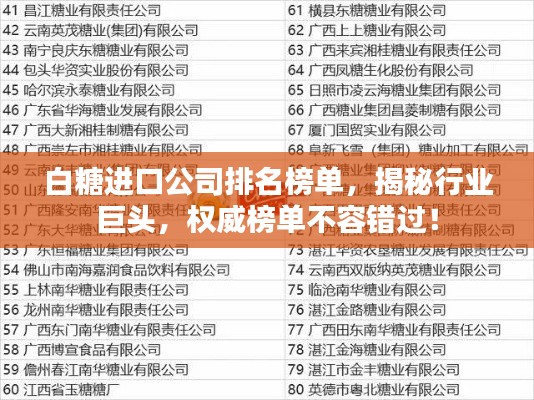 白糖进口公司排名榜单,揭秘行业巨头,权威榜单不容错过!