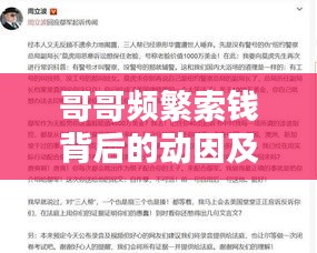 在当今社会,随着经济的发展和人们生活水平的提高,金钱在家庭关系中的重要性愈发凸显,有时,家庭成员之间可能会因金钱问题产生矛盾和困扰,哥哥不断要钱”这一情况,本文将从多个角度探讨这一现象,分析背后的原因,并提出应对之道。